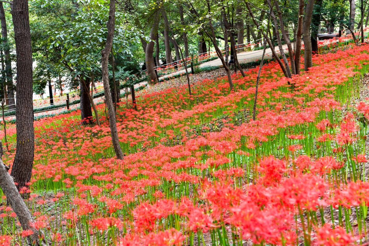 붉은 꽃무릇, 선암호수공원 가을을 물들이다