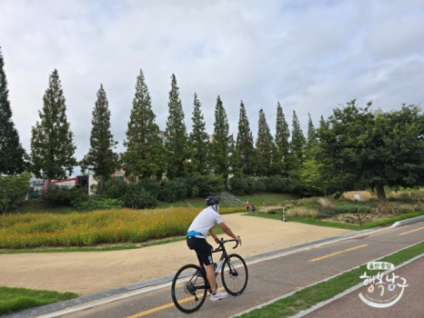 왼쪽에는 멋지게 조성된 그라스정원이 있고, 오른쪽에는 탁 트인 태화강이 있어서 산책하거나 자전거 타기에 아주 딱이더라고요.