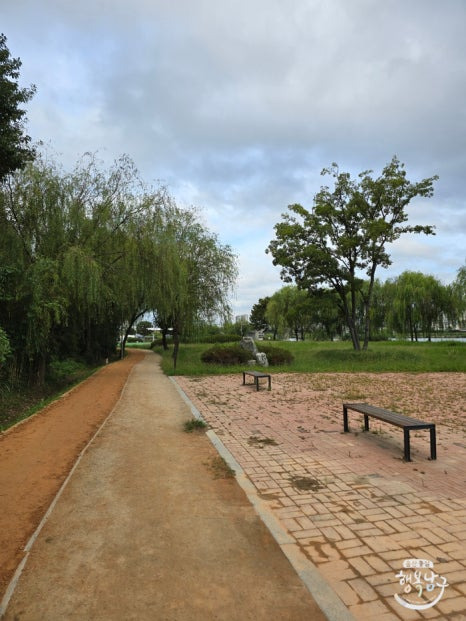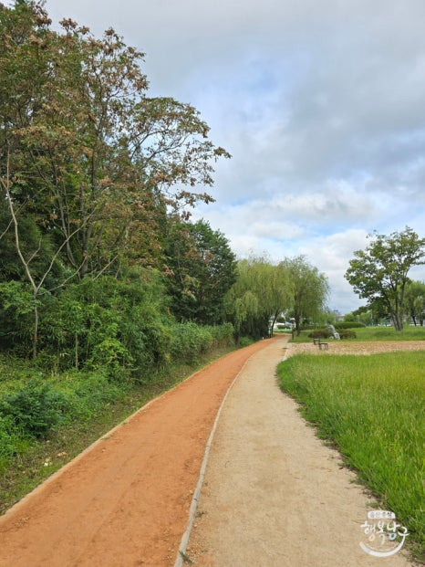 건강 상황에 맞게 왼쪽 황톳길에서 맨발로 걸으시든 오른쪽 길에서 신발을 신고 걸으시든 편하신 대로 산책을 할 수 있답니다.