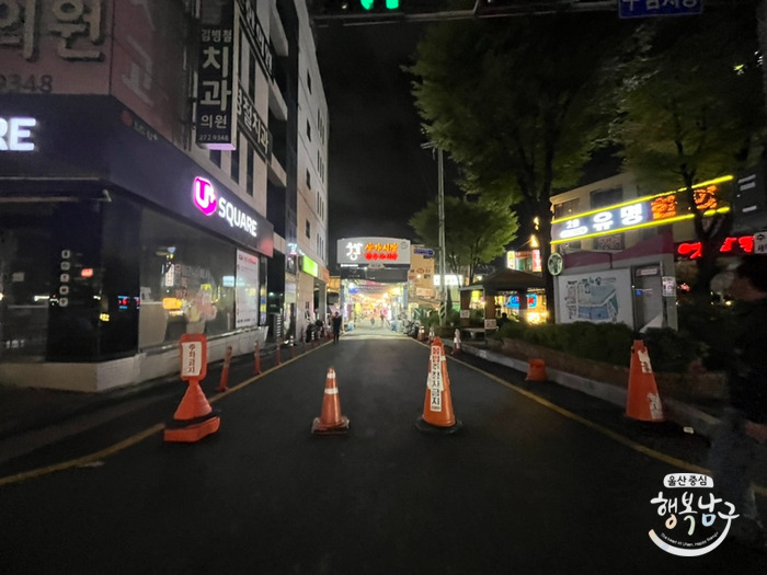 평소에 드나들 수 있는 도로인데 야시장 개장 시즌에는 이렇게 고깔을 세워서 차량 출입이 불가합니다.