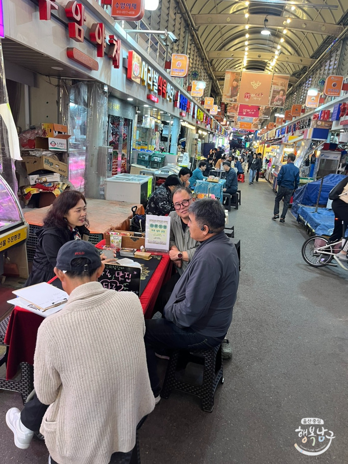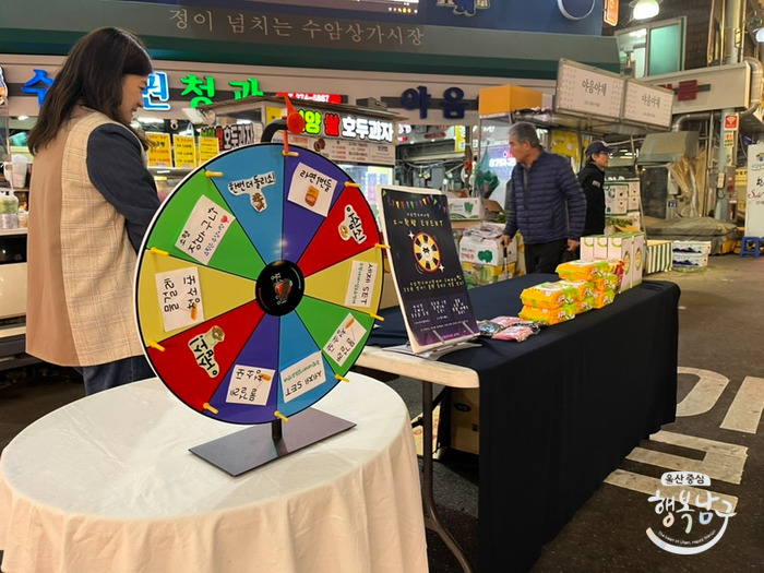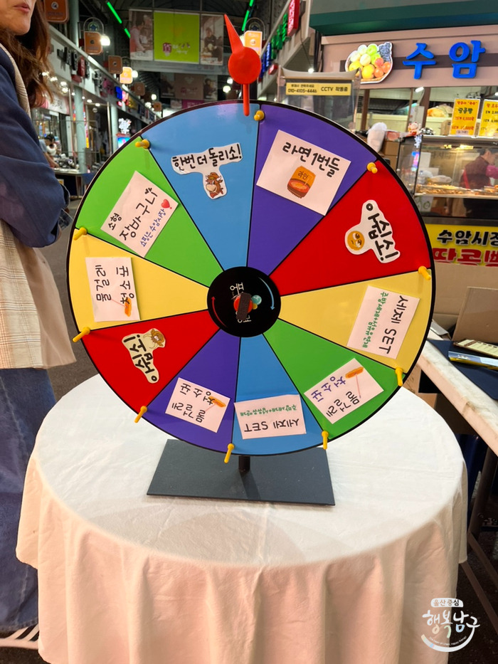 수암시장 중심부입니다. 한우야시장이 열리는 때에는 이곳에서 버스킹 공연도 이뤄지는데요. 오늘은 경품 추첨을 하고 있었어요.