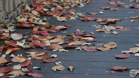 데크산책로에 쌓여있는 떨어진 낙엽이 가을이 왔으며 또한 가고 있는 진행형임을 알리고 있습니다.