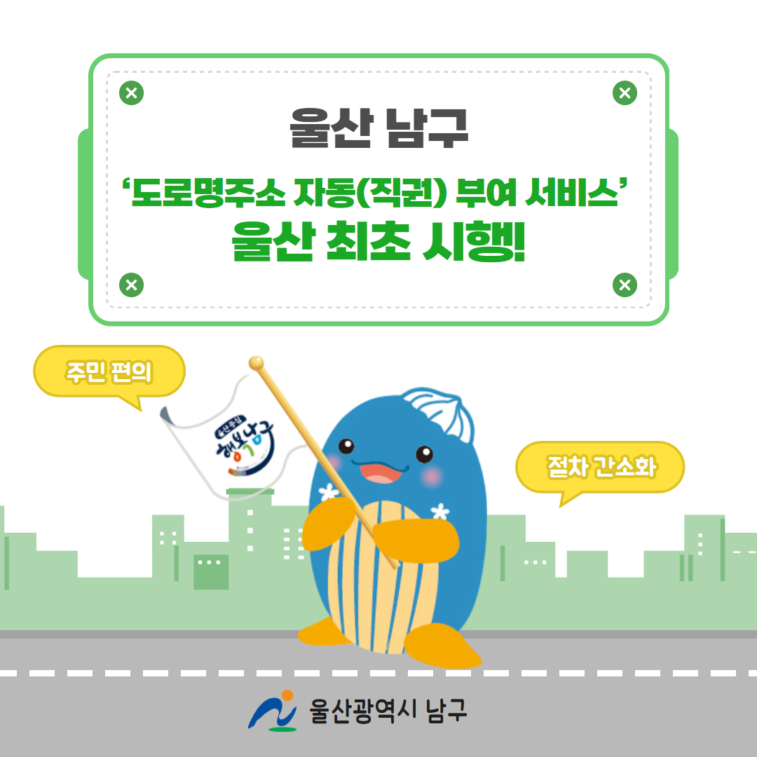 ‘도로명주소 자동(직권) 부여 서비스’를 울산 최초로 시행합니다.