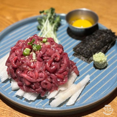 – 아부리육회: 겉은 토치로 구워 불향이 나고 속은 육회로,