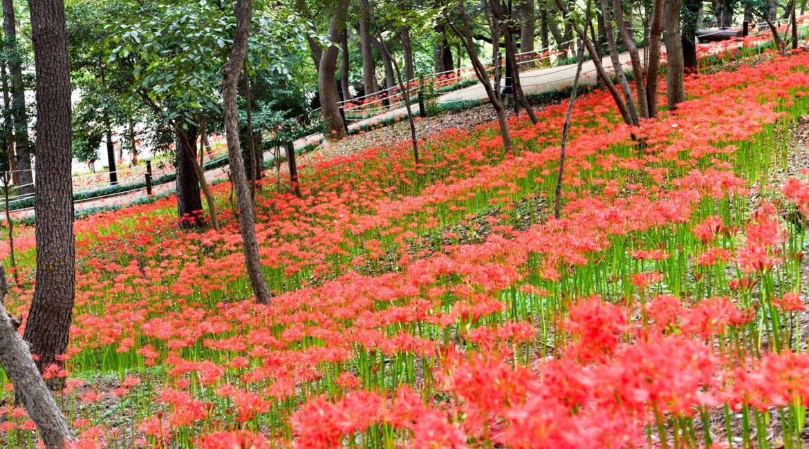 붉은 꽃무릇, 선암호수공원 가을을 물들이다